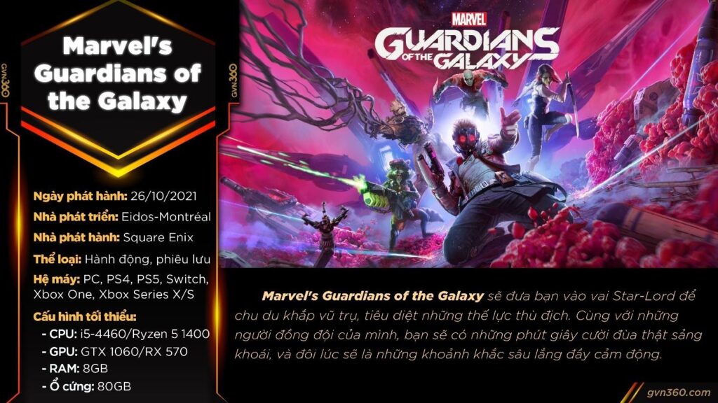 Tổng hợp đánh giá Marvel’s Guardians of the Galaxy – Cốt truyện và nhân vật xuất sắc nhưng tiếc là dính sạn trên PC Mời các bạn cùng điểm qua những website game hàng đầu thế giới đánh giá thế nào về tựa game Marvel’s Guardians of....