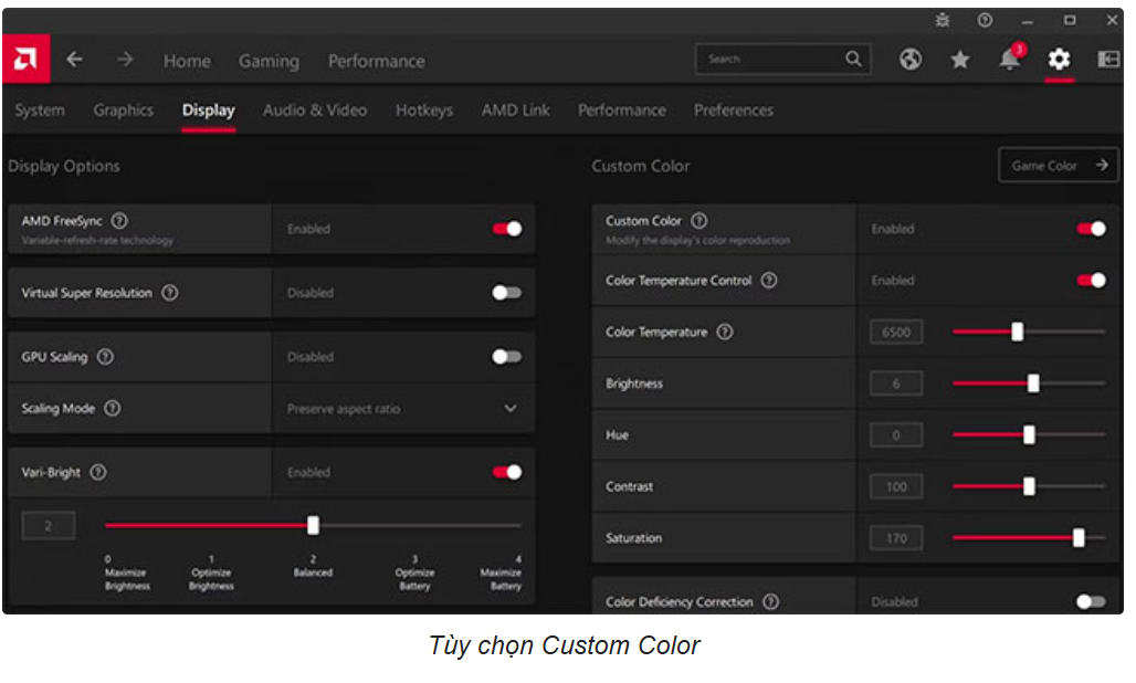 - Display Color Enhancement: Nếu bạn thích màu sắc sống động hơn, hãy chọn Vivid Gaming.