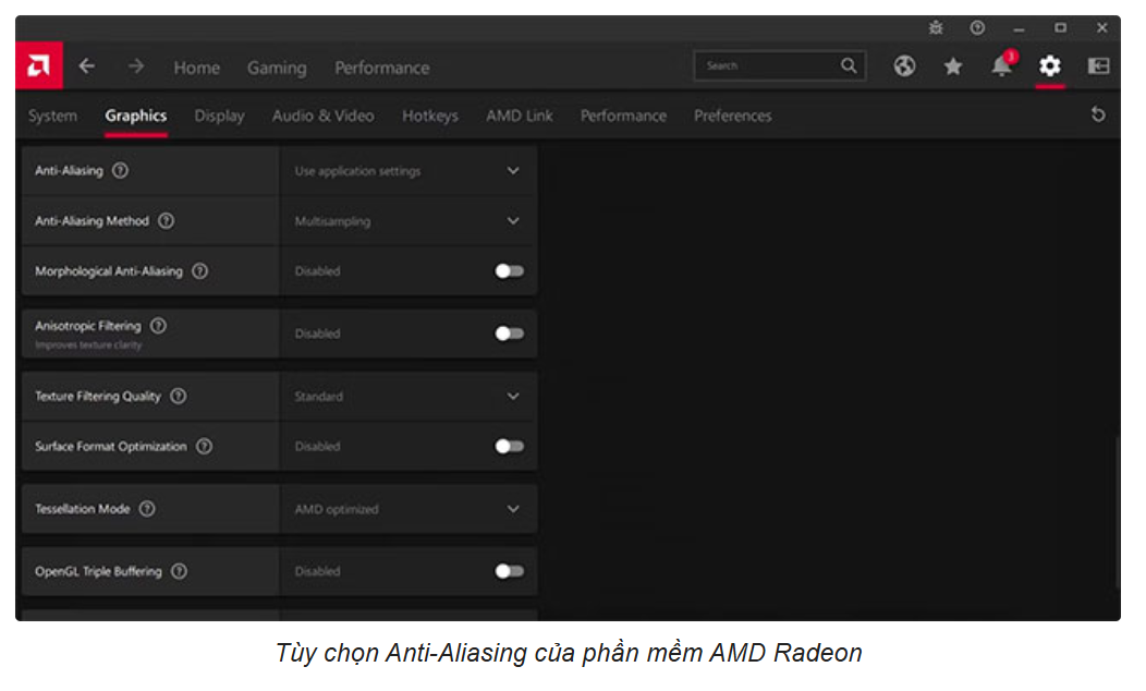 Cài đặt Global Graphics trong phần mềm AMD Radeon sẽ áp dụng cho tất cả các trò chơi. Bạn có thể tối ưu hóa cài đặt này để cải thiện hiệu suất: