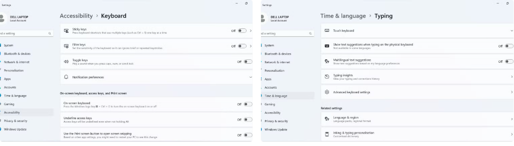 - Kiểm tra cài đặt Typing và tắt các tùy chọn liên quan đến đề xuất văn bản.