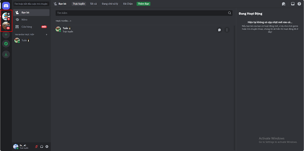 - Cột bên trái: Hiển thị danh sách các máy chủ (server) bạn tham gia.