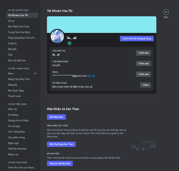 Cài đặt tài khoản: