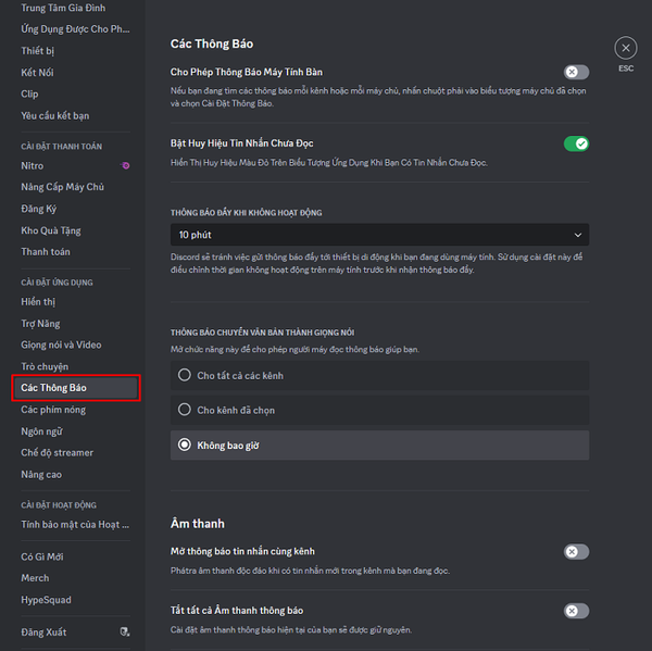 5. Tùy chỉnh thông báo và cài đặt tài khoản Discord Web