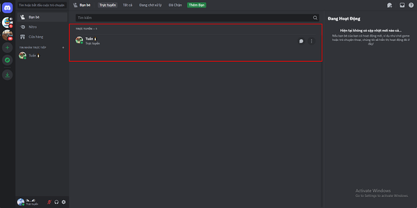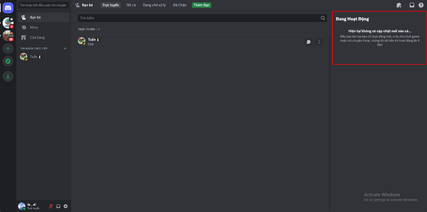 - Cột bên phải: Hiển thị hoạt động của bạn bè (chơi game, trò chuyện thoại,…).
