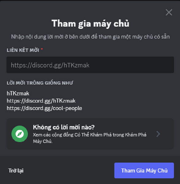- Bước 2: Chọn “Join a Server” và nhập mã mời của máy chủ bạn muốn tham gia.