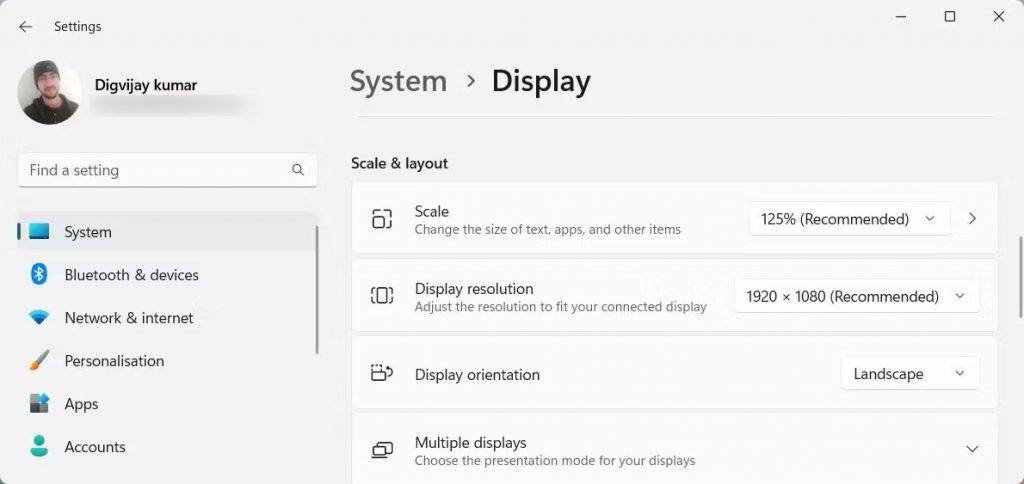 Nếu cập nhật driver không có tác dụng, hãy xem lại cài đặt hiển thị của bạn. Đôi khi, sự cố Split Screen xảy ra khi độ phân giải màn hình không được thiết lập chính xác. Trong tình huống này, hãy điều chỉnh độ phân giải của Windows và kiểm tra xem nó có giải quyết được sự cố không.