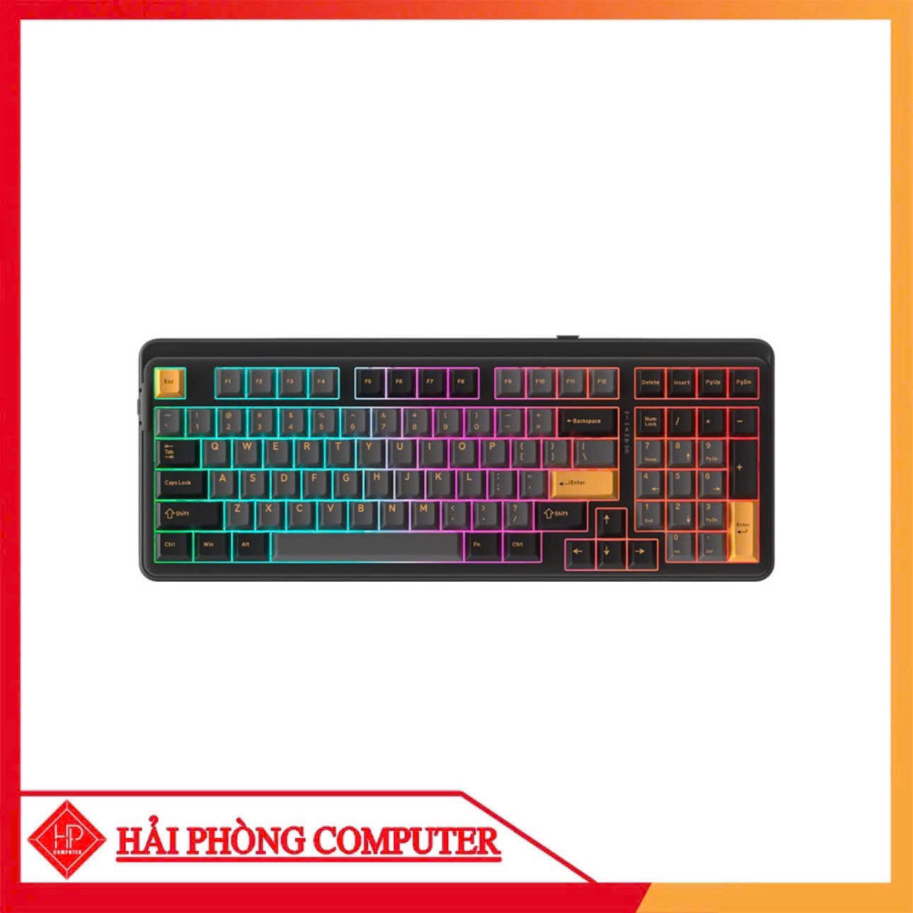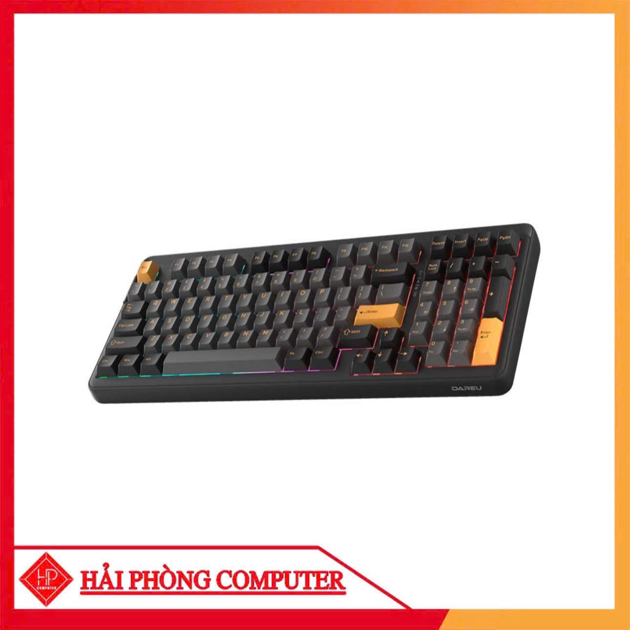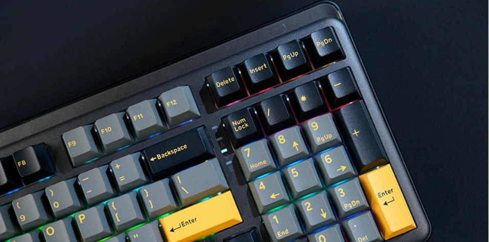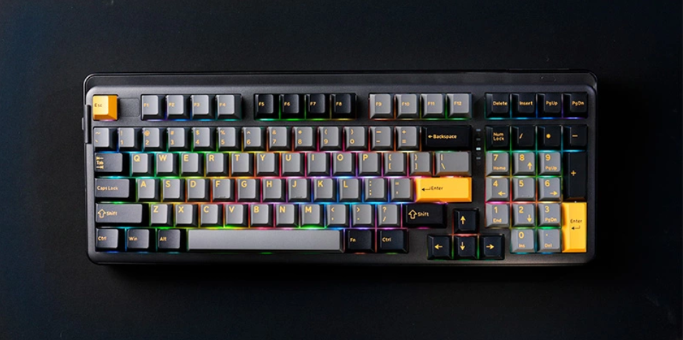 Với phối màu đen vàng (Black Golden) đầy cá tính, Dareu EK98 Pro toát lên vẻ đẹp mạnh mẽ nhưng không kém phần tinh tế. Layout 98 phím giữ lại cụm phím số tiện lợi nhưng vẫn đảm bảo sự nhỏ gọn hơn so với bàn phím full-size truyền thống, phù hợp với mọi không gian làm việc hoặc setup gaming.