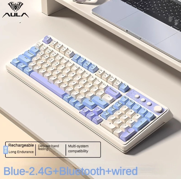 Bàn phím không dây AULA S99 Pro xanh dương be tím