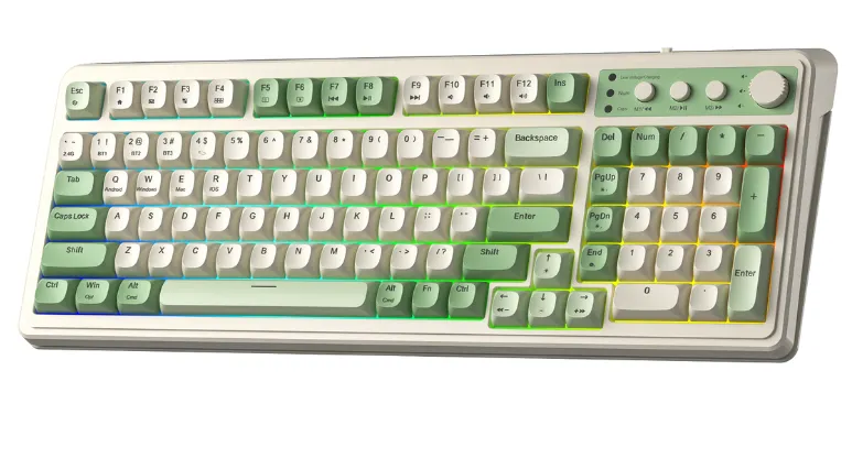 AULA S99 là bàn phím không dây đa năng được thiết kế dành cho người dùng văn phòng, học tập và giải trí, nổi bật với khả năng kết nối 3 chế độ linh hoạt, layout 99 phím gọn gàng, cùng núm xoay đa chức năng tiện lợi. Với phối màu xanh lá – be trẻ trung và hệ thống LED Rainbow, AULA S99 mang lại trải nghiệm sử dụng hiện đại, tiện nghi và thẩm mỹ.