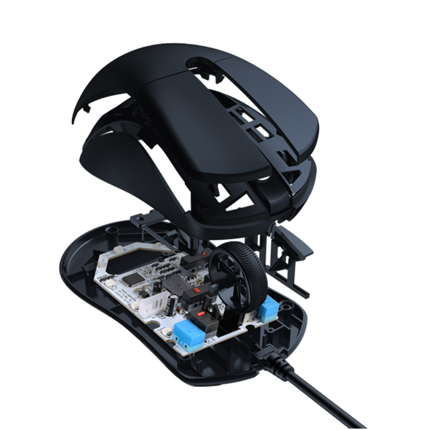 Dareu A960 RGB thiết kế khung xương bên trong sáng tạo, cấu trúc vỏ 3D được thiết kế tốt với máy đúc tốc độ cao tiên tiến, thân máy không đào lỗ để đạt được trọng lượng nhẹ 65g, vỏ mỏng và bền.
