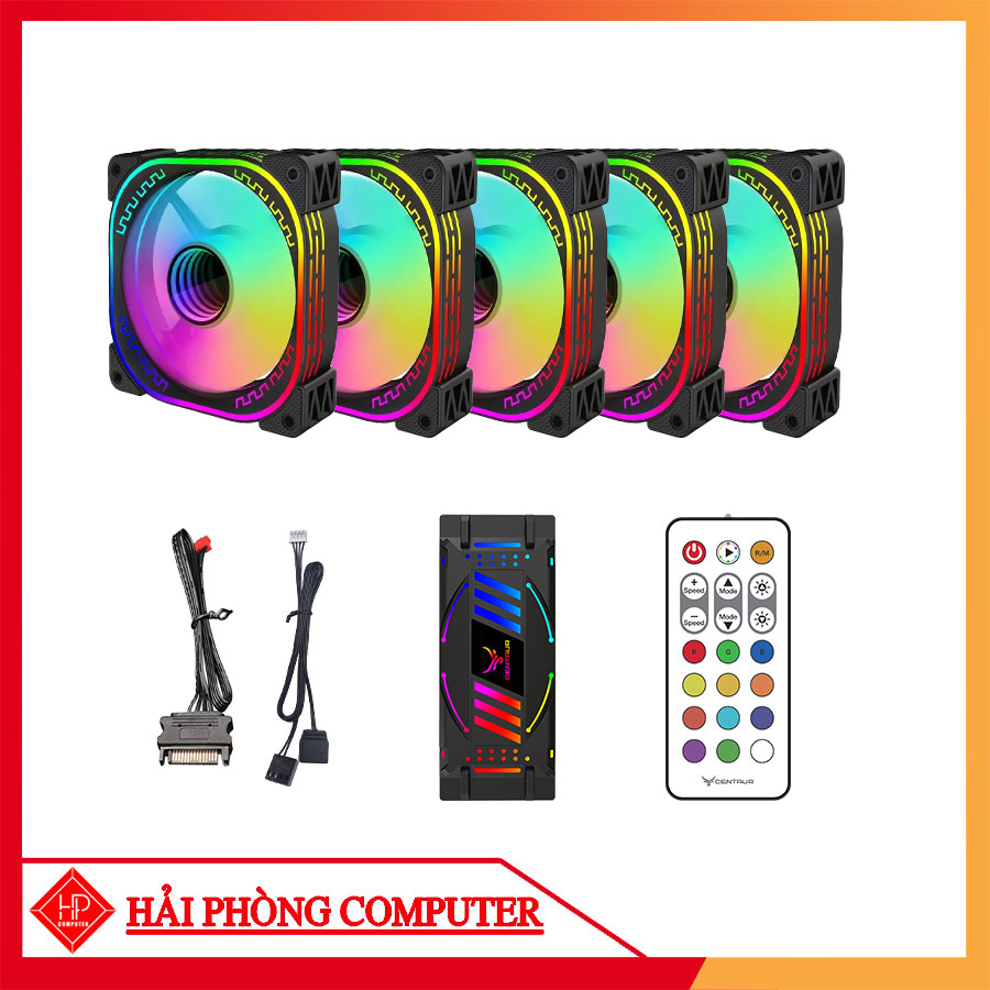 COMBO 5 FAN LED RGB CENTAUR CT 02 2 MÀU TRẮNG/ ĐEN + HUB KHIỂN