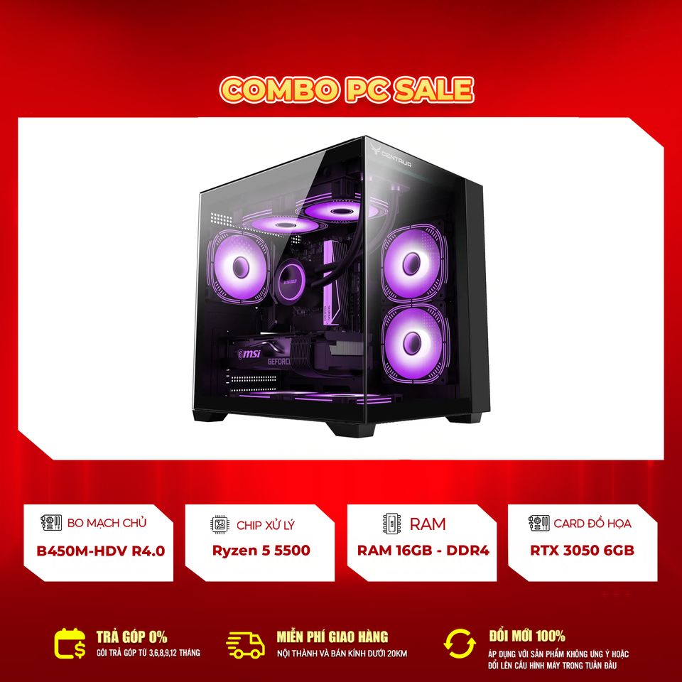 PC Ryzen 5 5500 | RTX 3050 6GB | RAM 16GB là lựa chọn “quốc dân” trong tầm giá – mạnh mẽ, ổn định, thẩm mỹ và dễ nâng cấp.