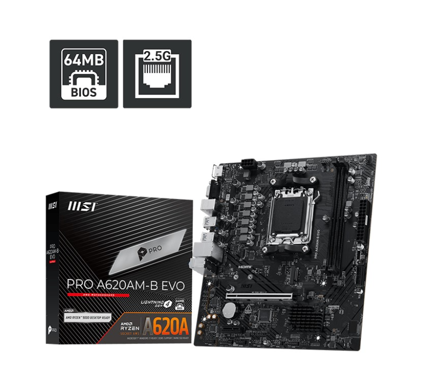 Mainboard MSI Pro A620AM-B EVO DDR5 – Bo mạch chủ AM5 tối ưu cho Ryzen 7000 / 8000 / 9000