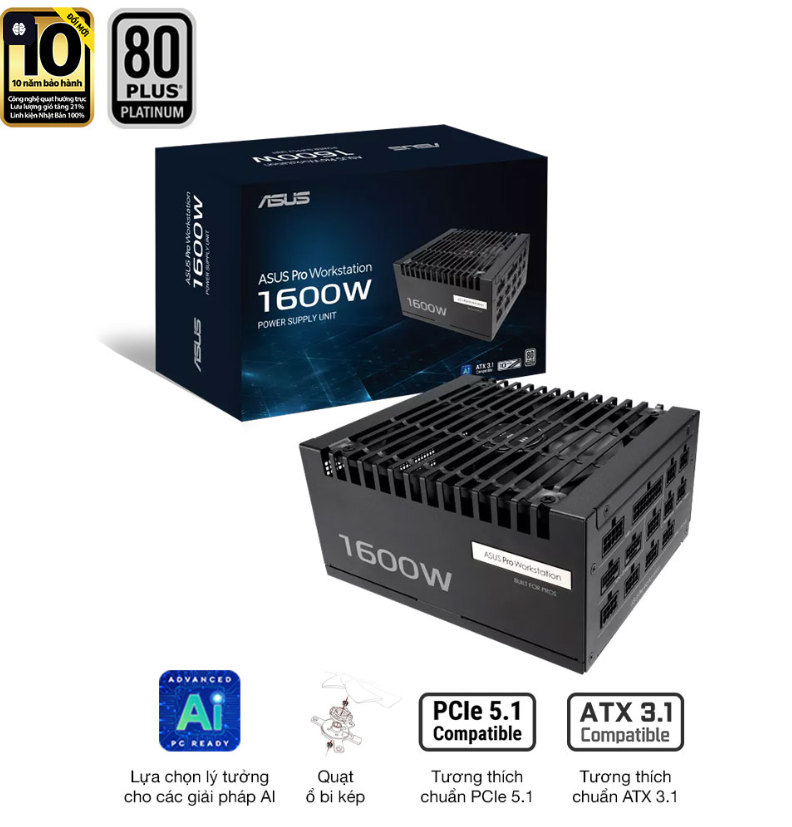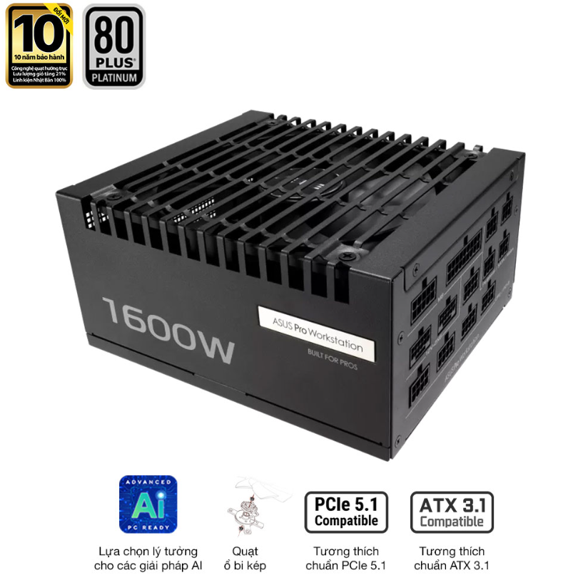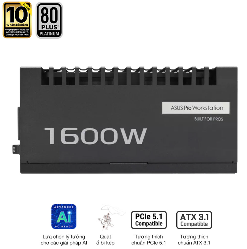 Với công suất thực 1600W, đạt chuẩn 80 Plus Platinum, hỗ trợ ATX 3.1, PCIe 5.0 và thiết kế Full Modular, ASUS PRO WORKSTATION 1600P mang lại độ tin cậy tối đa cho các hệ thống hiệu suất nặng.