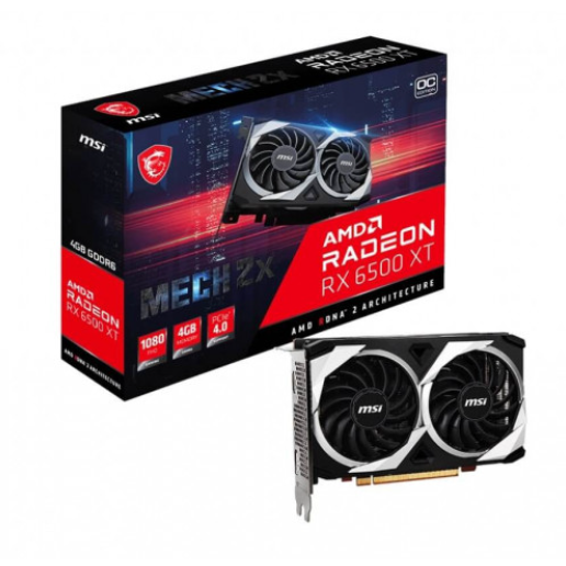 Card đồ họa AMD Radeon™ RX 6500 XT đem đến tốc độ khung hình đủ để chơi game nghiêm túc ở 1080p. Sức mạnh của kiến trúc AMD RDNA™ 2 bùng nổ với 16 đơn vị tính toán đồ họa, cùng với bộ nhớ đệm băng thông siêu rộng nhờ vào AMD Infinity Cache™, và sở hữu đến 4GB bộ nhớ GDDR6.