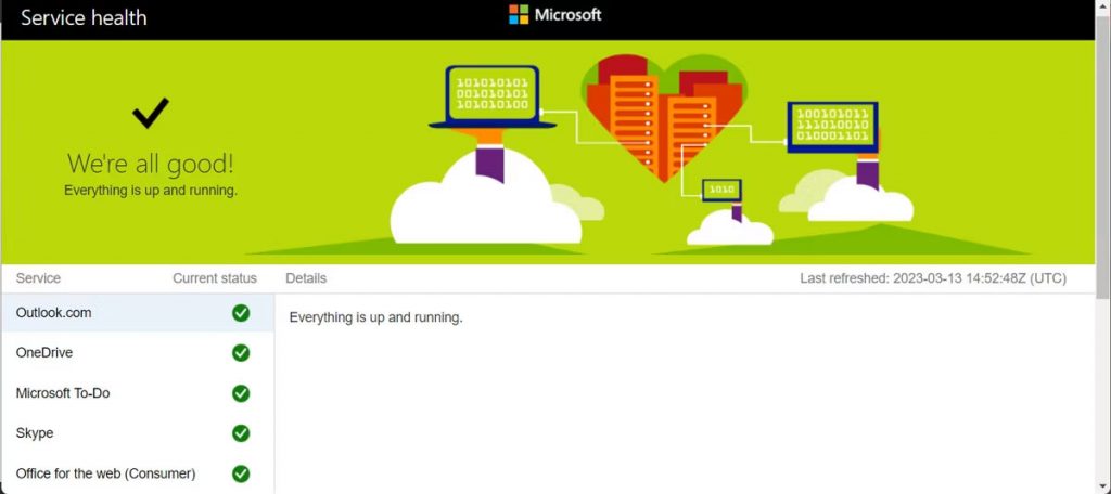2. Xác minh trạng thái máy chủ Microsoft