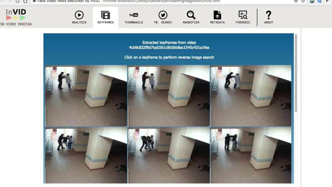 Công cụ sẽ chia nhỏ video thành các khung hình chính (keyframes), cho phép kiểm tra ngược bằng Google Images, TinEye hoặc Yandex.