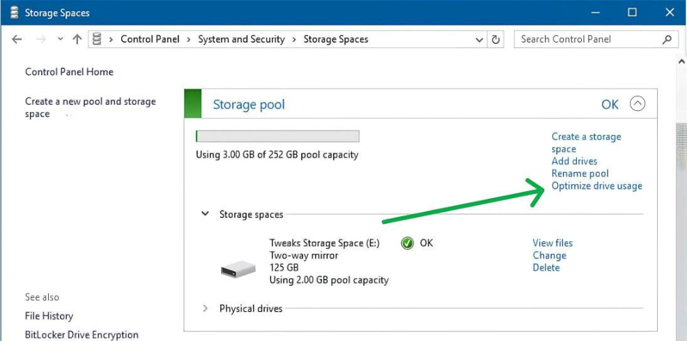 • Mở Storage Spaces, chọn nhóm lưu trữ cần tối ưu.