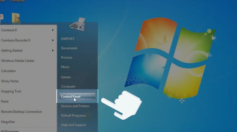 - Bấm vào Start và chọn Control Panel.