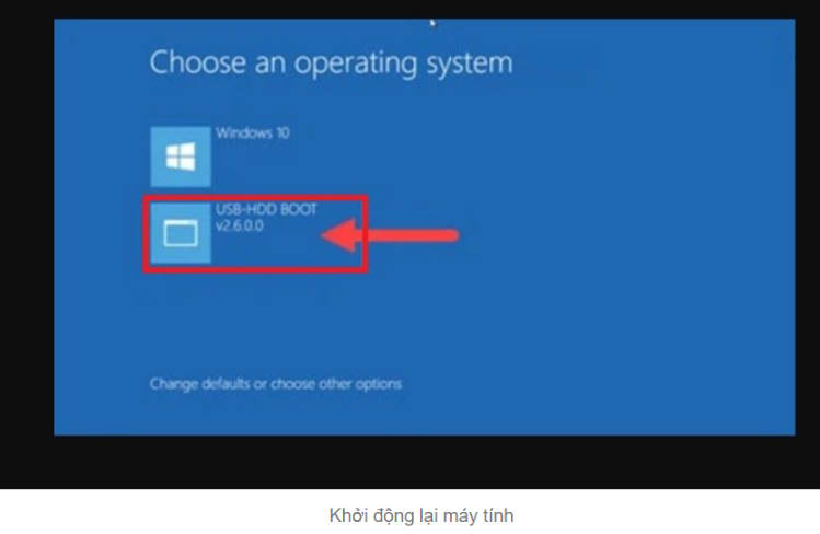- Khởi động từ ổ cứng: Khởi động lại máy tính và chọn "USB-HDD BOOT" để bắt đầu ghost.