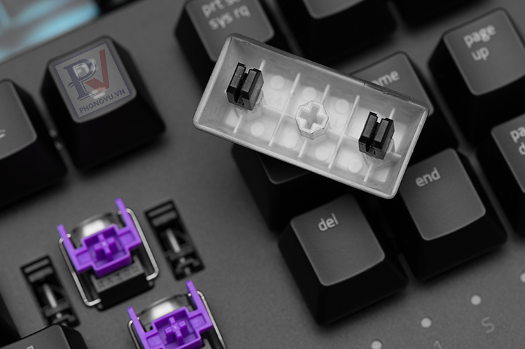 Các switch cho tiếng ồn không hoàn toàn giống nhau, nhất là khi có cấu tạo khác nhau. Do đó nếu có điều kiện hãy kiểm tra hết tất cả các loại switch và nghe âm thanh. Ở đây chúng ta không xác định âm thanh của switch đó như thế nào vì đã có quá nhiều bài test cơ bản (CherryMX, Topre hay các loại nhái lại tương tự…) mà nghe âm thanh phát ra từ keycap đập xuống nắp switch bên dưới. Nếu keycap dày sẽ cho âm thanh trầm đục, keycap mỏng sẽ cho âm thanh chói hơn. Từ đây ta xác định được một phần chất lượng keycap, bên cạnh đó là việc kiểm tra chất liệu keycap bằng cách tháo ra và lật ngửa lên. Các loại keycap rẻ tiền phổ thông (giống keycap Trung Quốc hay sản xuất hàng loạt) thường có cấu tạo là nhựa trắng đục cho ánh sáng xuyên qua và phủ một lớp nhung mỏng để khắc ký tự và tạo hình thức. Các loại keycap đắt hơn thì cho viền rất dày và rất cứng (thường là keycap PBT thay vì ABS phổ thông).