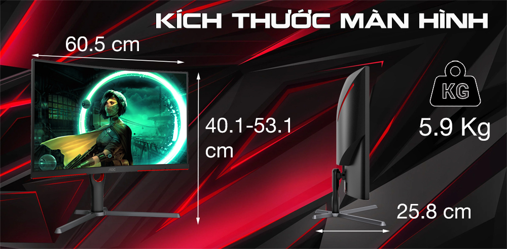 Màn hình cong mà LCD AOC C27G3 mang đến giúp tạo nên một không gian bao trùm, mang đến sự đắm chìm chân thực trong từng trận chiến game. Bên cạnh đó, bạn có thể trải nghiệm cảm giác mình là chủ thể của hành động, sống trọn từng khung hình ảnh sống động nhất bởi kích thước màn hình 27 inch, độ phân giải Full HD 1920X1080.