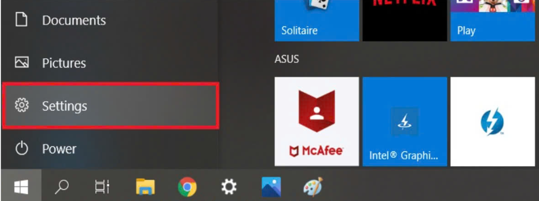 Bấm Windows trên bàn phím và chọn Settings.