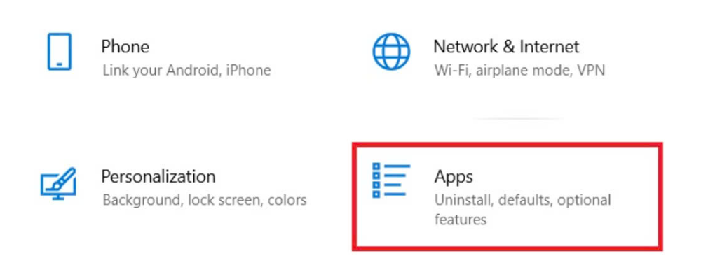 Trong cửa sổ Settings, chọn mục Apps.