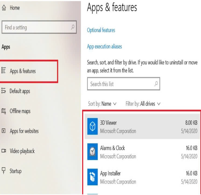 Tại mục Apps & features, bạn kéo xuống để thấy danh sách các ứng dụng đã được cài đặt trên máy.
