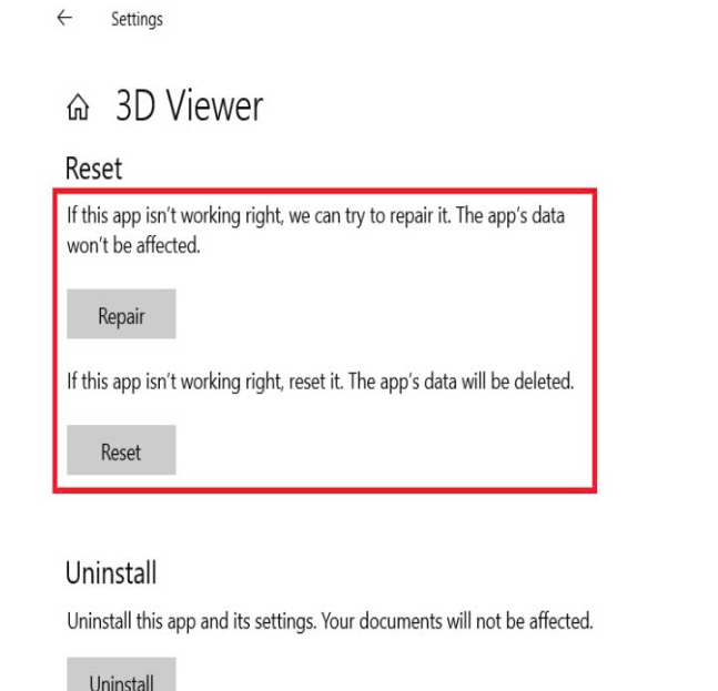 Hướng Dẫn Kiểm Tra Ứng Dụng Hỗ Trợ Tính Năng Reset và Repair