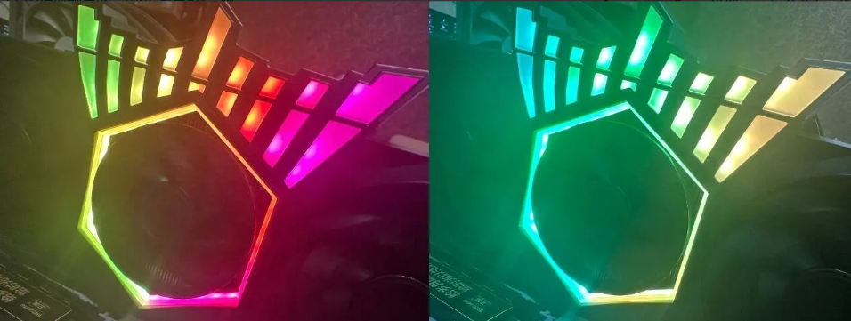 Hệ thống RGB của RTX 5070 Ti HOF OC LAB Black Soul X chính là điểm khiến chiếc card này trở thành tâm điểm của bất kỳ bộ PC nào. Ba quạt được bao quanh bởi vòng LED sáng mạnh, trong trẻo và đầy chiều sâu, trong khi logo Crown phát sáng ở giữa tạo nên dấu ấn nhận diện cực kỳ nổi bật.